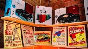 The basement stage still presents the finest local musicians and DJs (and boasts a portion of an original wall mural painted by art students John Lennon and Stuart Sutcliffe), and the ground floor is a cozy pub with a great drink selection. But Stanley has implemented a radical vision in the upstairs bar. Besides serving drinks, coffee, and cake, there’s a record shop that carries an excellent mix of classic rock, jazz, and current local indie bands. There’s also turntables installed in the booths for spinning selected open LPs from the racks (the night I stopped in, a gaggle of locals my age were non-ironically blasting ELO’s Out of the Blue at top volume over a few pints), and there’s also a restored, 1948 Voice-O-Graph recording booth (one of four in the world) that allows customers to record three minutes of sound directly to a clear vinyl disc!